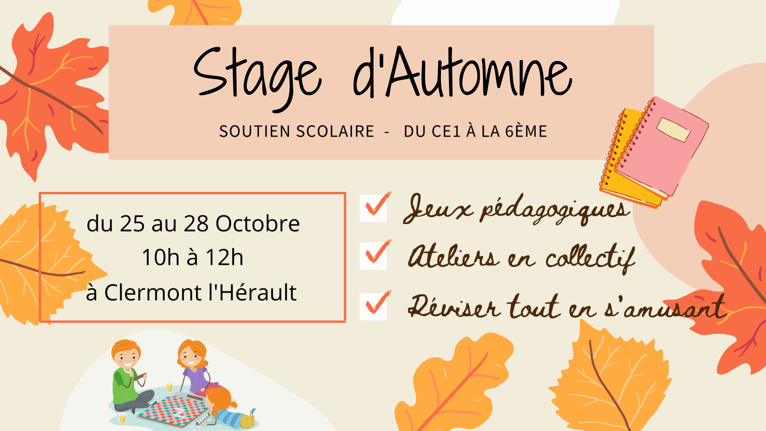 Le stage se déroule sur 4 jours pendant la 1ère semaine des vacances d’automne, le matin de 10h à 12h.